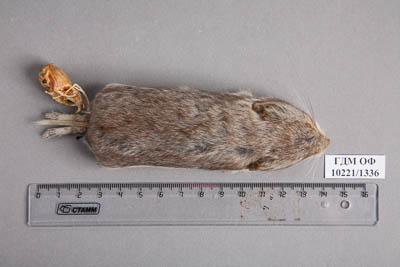 Тушка с черепом. Хангайская полевка. Alticola semicanus Allen,1924. Классификация: Хордовые Chordata, Позвоночные Vertebrata, Млекопитающие Mammalia, Грызуны Rodentia, Cricetidae, Хангайская полевка Alticola semicanus Allen,1924
