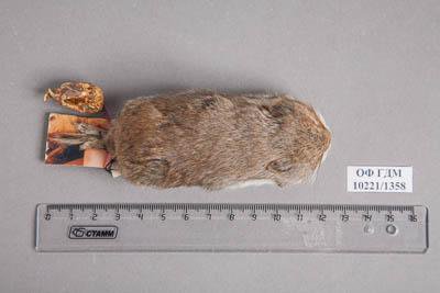 Тушка с черепом. Лемминговидная полевка. Alticola lemminus Miller,1898. Классификация: Хордовые Chordata, Позвоночные Vertebrata, Млекопитающие Mammalia, Грызуны Rodentia, Cricetidae, Лемминговидная полевка Alticola lemminus Miller,1898
