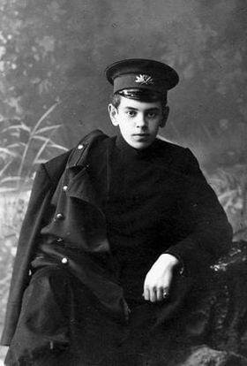 Постановочный снимок, выполненный в студийных декорациях. На фотографии изображен неизвестный гимназист. Он в темной гимназической форме, на голове фуражка с эмблемой гимназии, на правое плечо накинута шинель. Вид спереди. Портрет поколенный.
