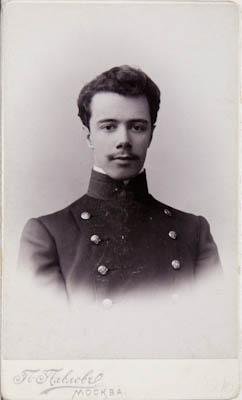 На фотографии изображен А. Ф. Котс он в студенческом мундире. Мундир двубортный с воротником - стойкой. Портрет погрудный. Вид спереди.