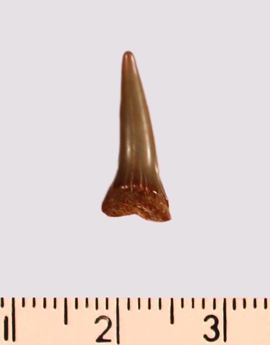 Зуб (фрагмент). Акула. Scapanorhynchus gigas Woodward, 1889. Классификация: Хордовые Chordata, Позвоночные Vertebrata, Хрящевые рыбы Chondrichthyes, Пластиножаберные Elasmobranchii