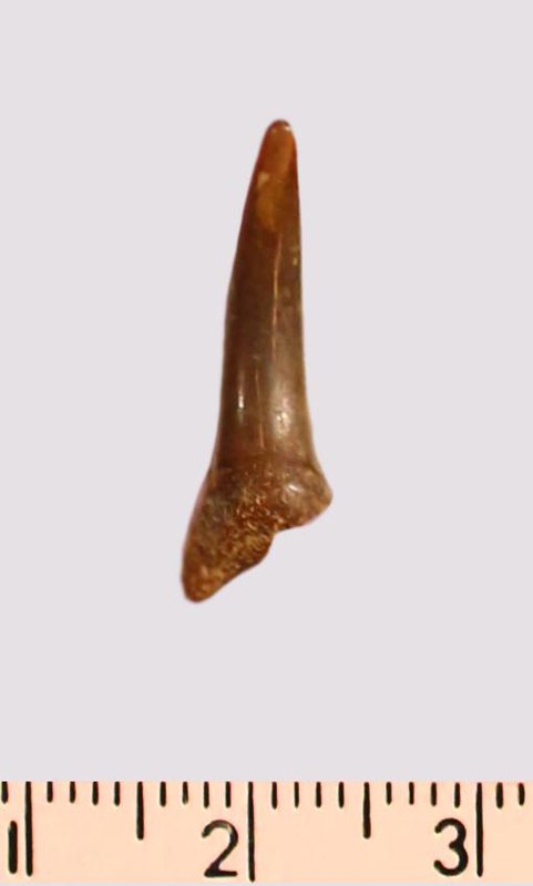 Зуб. Акула. Scapanorhynchus gigas Woodward, 1889. Классификация: Хордовые Chordata, Позвоночные Vertebrata, Хрящевые рыбы Chondrichthyes, Пластиножаберные Elasmobranchii