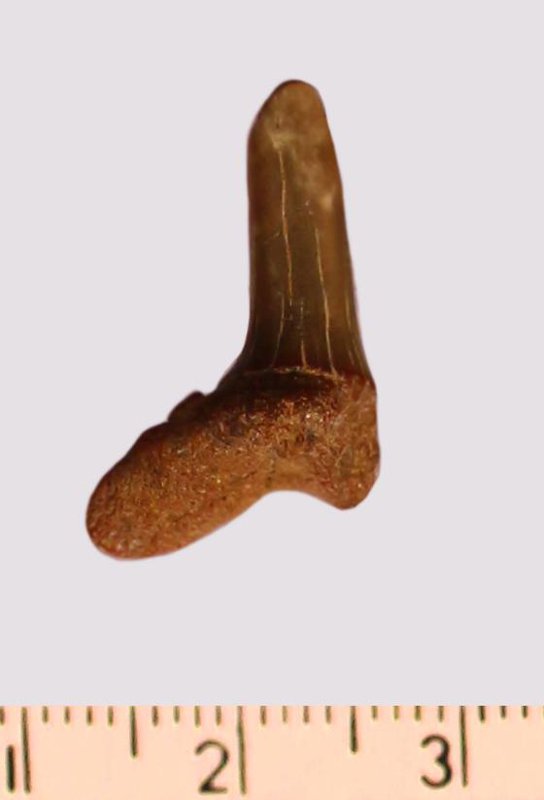 Зуб. Акула. Scapanorhynchus gigas Woodward, 1889. Классификация: Хордовые Chordata, Позвоночные Vertebrata, Хрящевые рыбы Chondrichthyes, Пластиножаберные Elasmobranchii