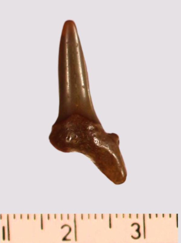 Зуб. Акула. Scapanorhynchus gigas Woodward, 1889. Классификация: Хордовые Chordata, Позвоночные Vertebrata, Хрящевые рыбы Chondrichthyes, Пластиножаберные Elasmobranchii