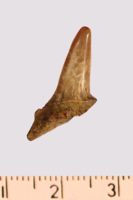 Зуб. Акула. Scapanorhynchus gigas Woodward, 1889. Классификация: Хордовые Chordata, Позвоночные Vertebrata, Хрящевые рыбы Chondrichthyes, Пластиножаберные Elasmobranchii