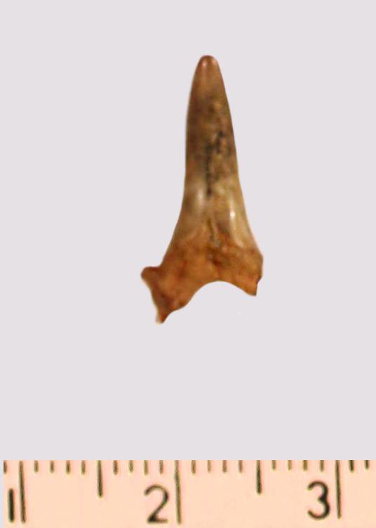 Зуб. Акула. Scapanorhynchus gigas Woodward, 1889. Классификация: Хордовые Chordata, Позвоночные Vertebrata, Хрящевые рыбы Chondrichthyes, Пластиножаберные Elasmobranchii