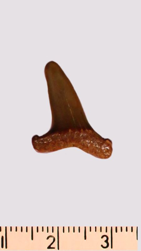 Зуб. Акула. Scapanorhynchus gigas Woodward, 1889. Классификация: Хордовые Chordata, Позвоночные Vertebrata, Хрящевые рыбы Chondrichthyes, Пластиножаберные Elasmobranchii