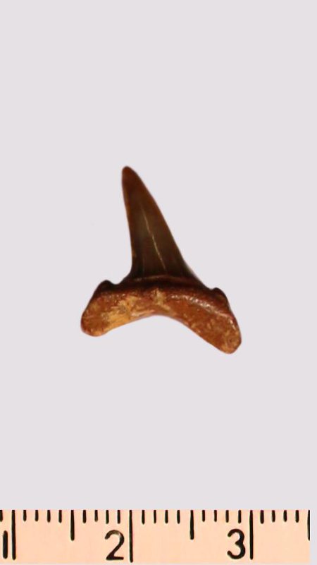 Зуб. Акула. Scapanorhynchus gigas Woodward, 1889. Классификация: Хордовые Chordata, Позвоночные Vertebrata, Хрящевые рыбы Chondrichthyes, Пластиножаберные Elasmobranchii