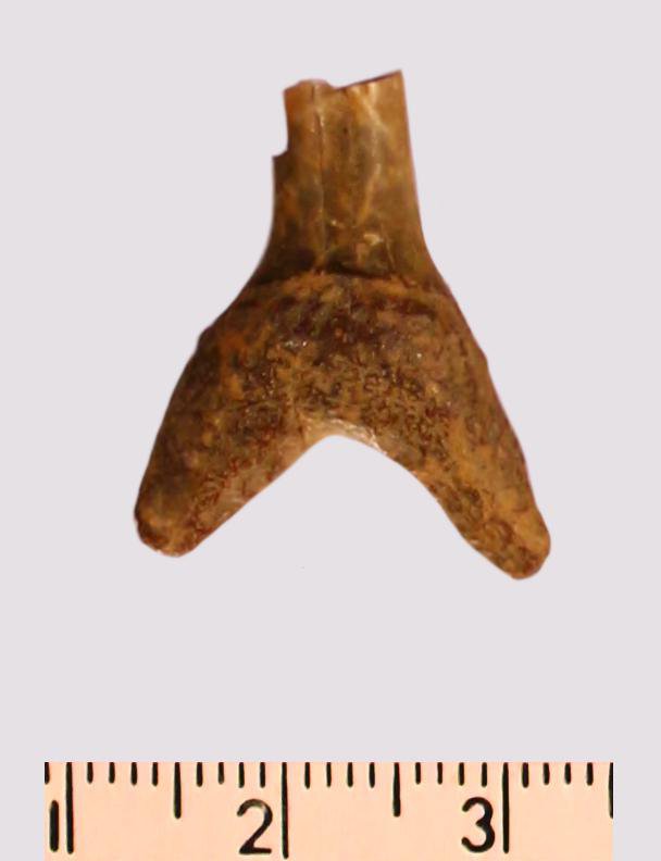 Зуб. Акула. Scapanorhynchus gigas Woodward, 1889. Классификация: Хордовые Chordata, Позвоночные Vertebrata, Хрящевые рыбы Chondrichthyes, Пластиножаберные Elasmobranchii