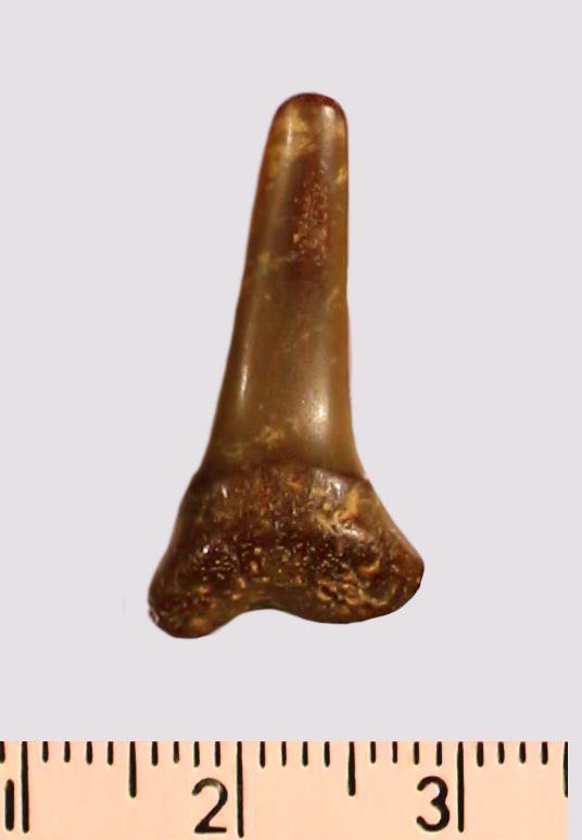 Зуб. Акула. Scapanorhynchus gigas Woodward, 1889. Классификация: Хордовые Chordata, Позвоночные Vertebrata, Хрящевые рыбы Chondrichthyes, Пластиножаберные Elasmobranchii