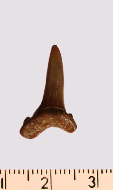 Зуб. Акула. Scapanorhynchus gigas Woodward, 1889. Классификация: Хордовые Chordata, Позвоночные Vertebrata, Хрящевые рыбы Chondrichthyes, Пластиножаберные Elasmobranchii