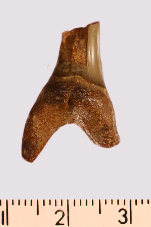Зуб. Акула. Scapanorhynchus gigas Woodward, 1889. Классификация: Хордовые Chordata, Позвоночные Vertebrata, Хрящевые рыбы Chondrichthyes, Пластиножаберные Elasmobranchii