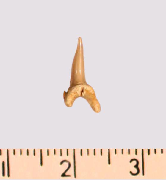 Зуб. Акула. Eostriatolamia subulata (Agassiz, 1843). Классификация: Хордовые Chordata, Позвоночные Vertebrata, Хрящевые рыбы Chondrichthyes, Пластиножаберные Elasmobranchii