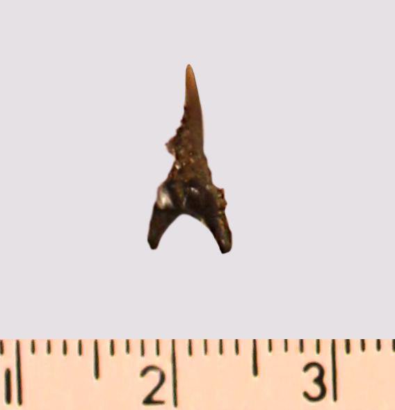 Зуб. Акула. Eostriatolamia subulata (Agassiz, 1843). Классификация: Хордовые Chordata, Позвоночные Vertebrata, Хрящевые рыбы Chondrichthyes, Пластиножаберные Elasmobranchii