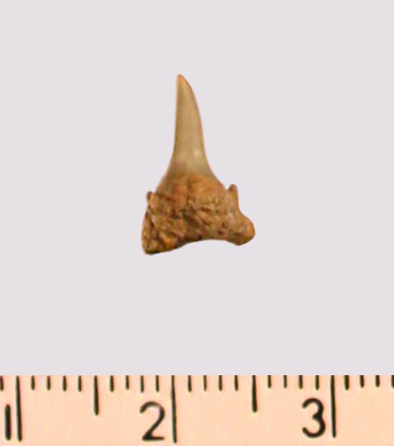 Зуб. Акула. Eostriatolamia subulata (Agassiz, 1843). Классификация: Хордовые Chordata, Позвоночные Vertebrata, Хрящевые рыбы Chondrichthyes, Пластиножаберные Elasmobranchii