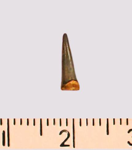 Зуб (фрагмент). Акула. Eostriatolamia subulata (Agassiz, 1843). Классификация: Хордовые Chordata, Позвоночные Vertebrata, Хрящевые рыбы Chondrichthyes, Пластиножаберные Elasmobranchii