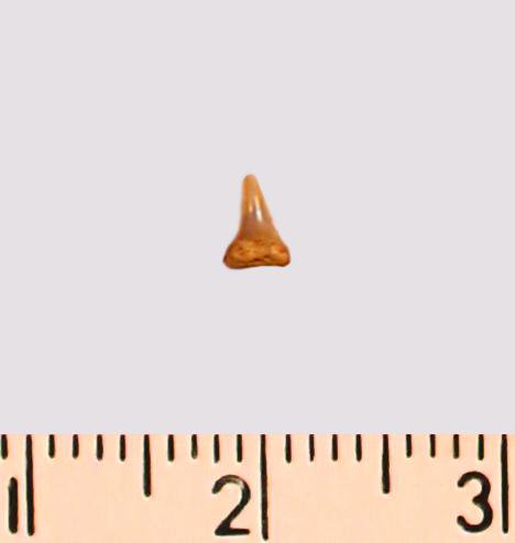 Зуб (фрагмент). Акула. Eostriatolamia subulata (Agassiz, 1843). Классификация: Хордовые Chordata, Позвоночные Vertebrata, Хрящевые рыбы Chondrichthyes, Пластиножаберные Elasmobranchii