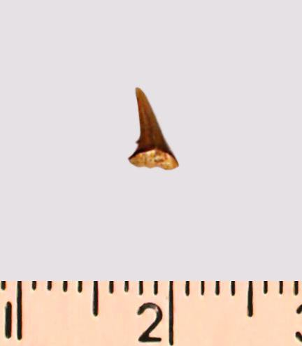Зуб (фрагмент). Акула. Eostriatolamia subulata (Agassiz, 1843). Классификация: Хордовые Chordata, Позвоночные Vertebrata, Хрящевые рыбы Chondrichthyes, Пластиножаберные Elasmobranchii