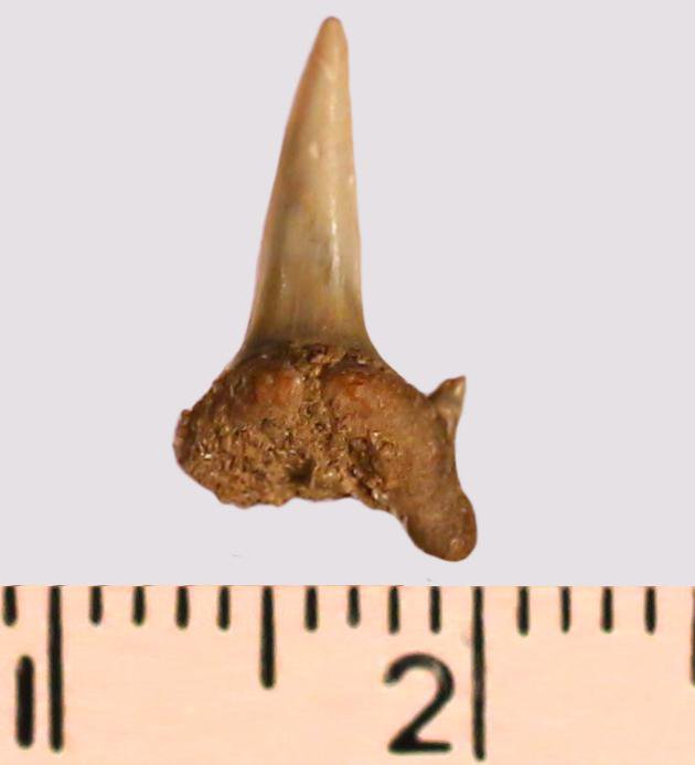 Зуб. Акула. Eostriatolamia subulata (Agassiz, 1843). Классификация: Хордовые Chordata, Позвоночные Vertebrata, Хрящевые рыбы Chondrichthyes, Пластиножаберные Elasmobranchii