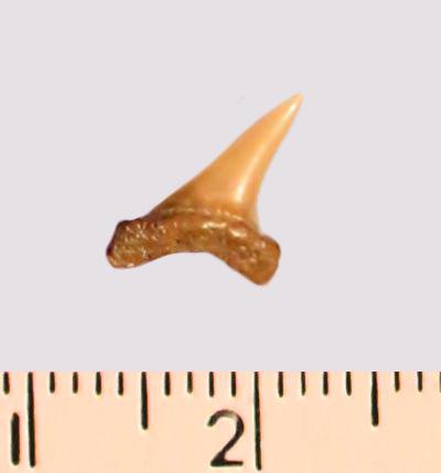 Зуб. Акула. Eostriatolamia subulata (Agassiz, 1843). Классификация: Хордовые Chordata, Позвоночные Vertebrata, Хрящевые рыбы Chondrichthyes, Пластиножаберные Elasmobranchii