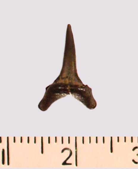 Зуб. Акула. Eostriatolamia subulata (Agassiz, 1843). Классификация: Хордовые Chordata, Позвоночные Vertebrata, Хрящевые рыбы Chondrichthyes, Пластиножаберные Elasmobranchii