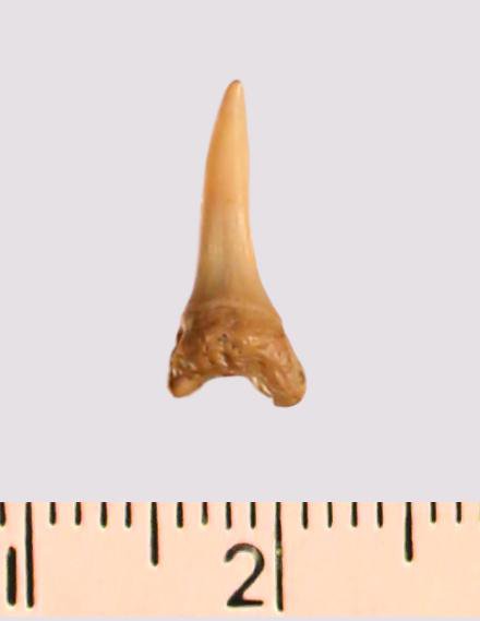 Зуб. Акула. Eostriatolamia subulata (Agassiz, 1843). Классификация: Хордовые Chordata, Позвоночные Vertebrata, Хрящевые рыбы Chondrichthyes, Пластиножаберные Elasmobranchii