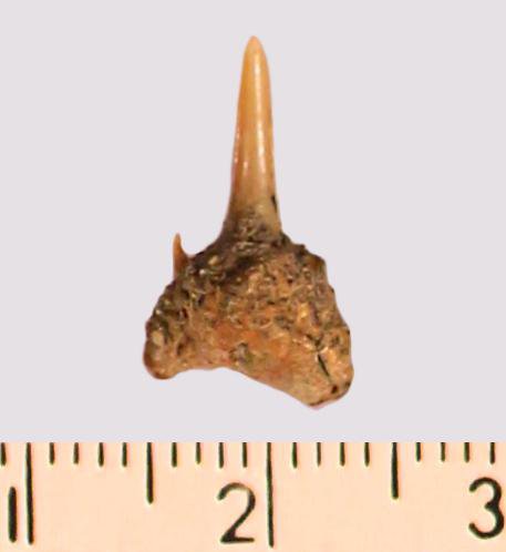 Зуб. Акула. Eostriatolamia subulata (Agassiz, 1843). Классификация: Хордовые Chordata, Позвоночные Vertebrata, Хрящевые рыбы Chondrichthyes, Пластиножаберные Elasmobranchii