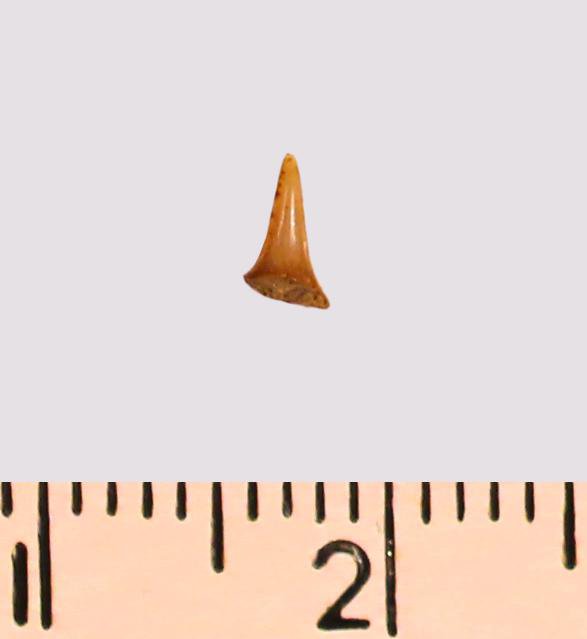Зуб (фрагмент). Акула. Odontaspis striatula Dalinkevicius, 1935. Классификация: Хордовые Chordata, Позвоночные Vertebrata, Хрящевые рыбы Chondrichthyes, Пластиножаберные Elasmobranchii