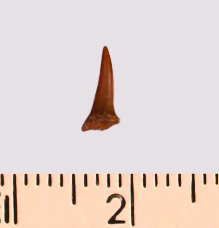 Зуб (фрагмент). Акула. Odontaspis striatula Dalinkevicius, 1935. Классификация: Хордовые Chordata, Позвоночные Vertebrata, Хрящевые рыбы Chondrichthyes, Пластиножаберные Elasmobranchii