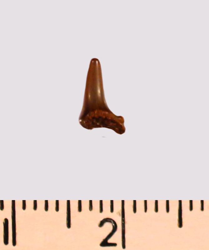 Зуб. Акула. Odontaspis striatula Dalinkevicius, 1935. Классификация: Хордовые Chordata, Позвоночные Vertebrata, Хрящевые рыбы Chondrichthyes, Пластиножаберные Elasmobranchii