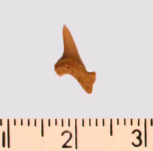 Зуб. Акула. Odontaspis striatula Dalinkevicius, 1935. Классификация: Хордовые Chordata, Позвоночные Vertebrata, Хрящевые рыбы Chondrichthyes, Пластиножаберные Elasmobranchii