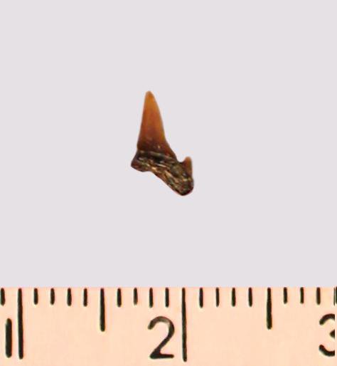 Зуб. Акула. Odontaspis striatula Dalinkevicius, 1935. Классификация: Хордовые Chordata, Позвоночные Vertebrata, Хрящевые рыбы Chondrichthyes, Пластиножаберные Elasmobranchii