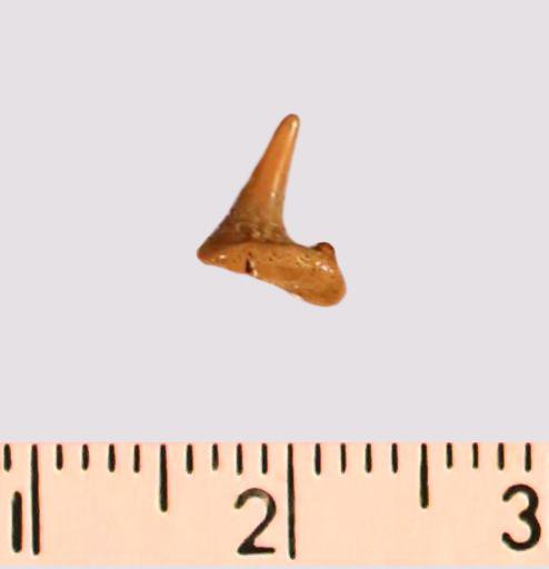 Зуб. Акула. Odontaspis striatula Dalinkevicius, 1935. Классификация: Хордовые Chordata, Позвоночные Vertebrata, Хрящевые рыбы Chondrichthyes, Пластиножаберные Elasmobranchii