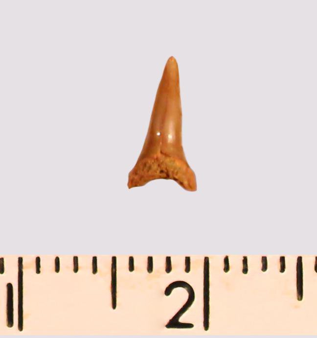 Зуб. Акула. Odontaspis striatula Dalinkevicius, 1935. Классификация: Хордовые Chordata, Позвоночные Vertebrata, Хрящевые рыбы Chondrichthyes, Пластиножаберные Elasmobranchii
