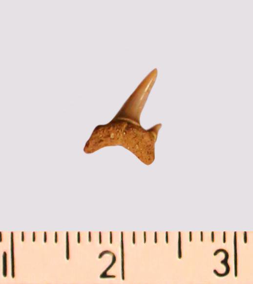 Зуб. Акула. Odontaspis striatula Dalinkevicius, 1935. Классификация: Хордовые Chordata, Позвоночные Vertebrata, Хрящевые рыбы Chondrichthyes, Пластиножаберные Elasmobranchii