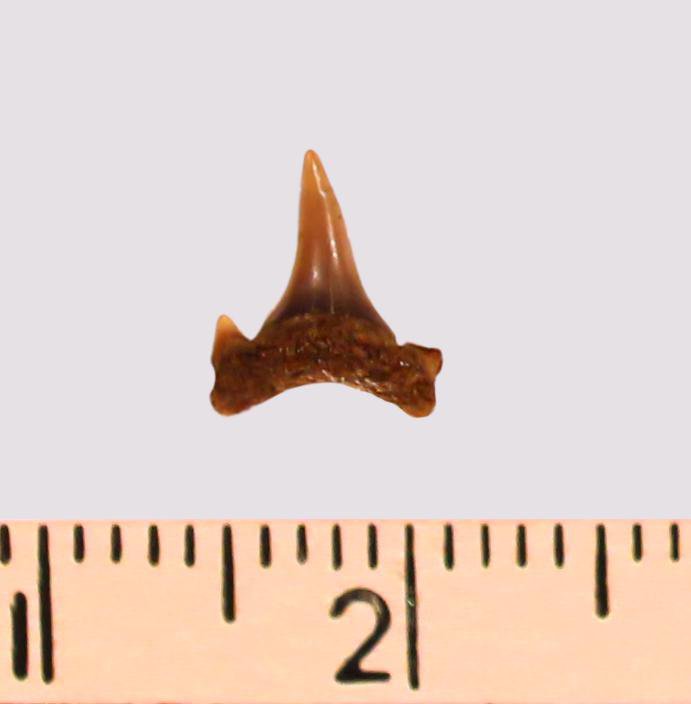 Зуб. Акула. Odontaspis striatula Dalinkevicius, 1935. Классификация: Хордовые Chordata, Позвоночные Vertebrata, Хрящевые рыбы Chondrichthyes, Пластиножаберные Elasmobranchii