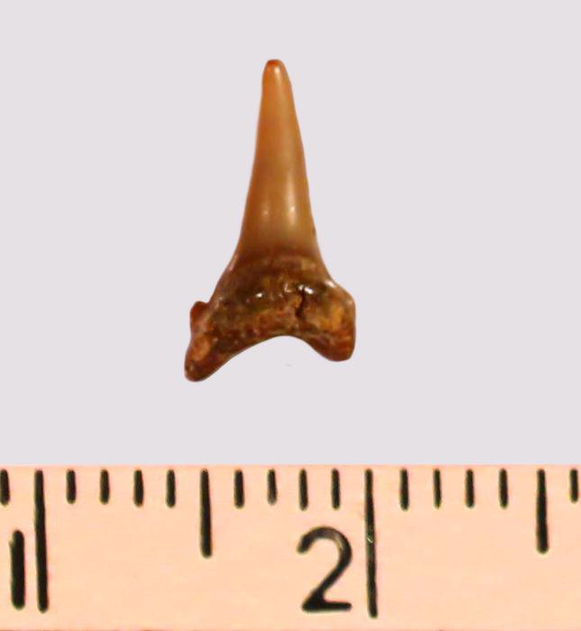 Зуб. Акула. Odontaspis striatula Dalinkevicius, 1935. Классификация: Хордовые Chordata, Позвоночные Vertebrata, Хрящевые рыбы Chondrichthyes, Пластиножаберные Elasmobranchii