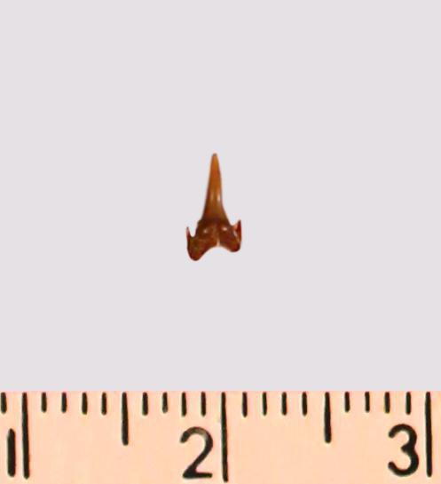 Зуб. Акула. Odontaspis striatula Dalinkevicius, 1935. Классификация: Хордовые Chordata, Позвоночные Vertebrata, Хрящевые рыбы Chondrichthyes, Пластиножаберные Elasmobranchii