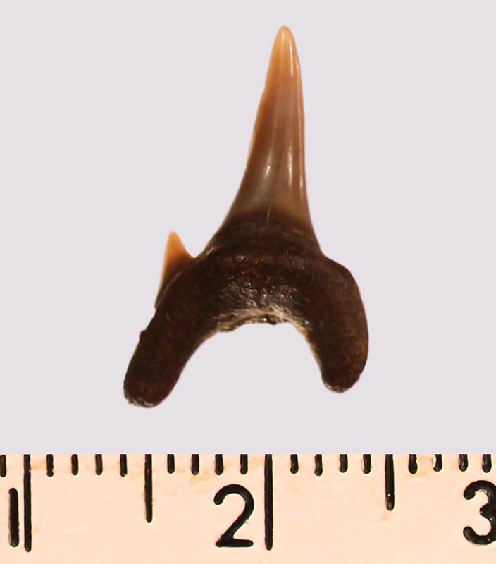 Зуб. Акула. Odontaspis macrorhiza (Cope) Leriche, 1902. Классификация: Хордовые Chordata, Позвоночные Vertebrata, Хрящевые рыбы Chondrichthyes, Пластиножаберные Elasmobranchii