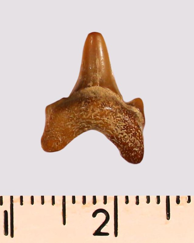 Зуб. Акула. Odontaspis macrorhiza (Cope) Leriche, 1902. Классификация: Хордовые Chordata, Позвоночные Vertebrata, Хрящевые рыбы Chondrichthyes, Пластиножаберные Elasmobranchii