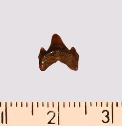 Зуб. Акула. Odontaspis macrorhiza (Cope) Leriche, 1902. Классификация: Хордовые Chordata, Позвоночные Vertebrata, Хрящевые рыбы Chondrichthyes, Пластиножаберные Elasmobranchii