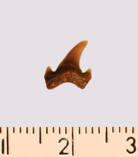 Зуб. Акула. Odontaspis macrorhiza (Cope) Leriche, 1902. Классификация: Хордовые Chordata, Позвоночные Vertebrata, Хрящевые рыбы Chondrichthyes, Пластиножаберные Elasmobranchii