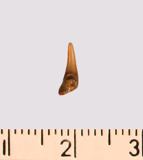 Зуб (фрагмент). Акула. Pseudoscapanorhynchus compressidens ( Herman 1977). Классификация: Хордовые Chordata, Позвоночные Vertebrata, Хрящевые рыбы Chondrichthyes, Пластиножаберные Elasmobranchii