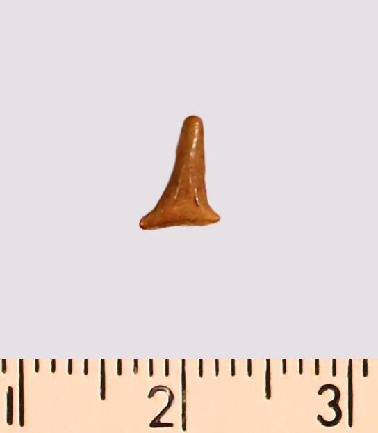 Зуб (фрагмент). Акула. Meristodon sp. Классификация: Хордовые Chordata, Позвоночные Vertebrata, Хрящевые рыбы Chondrichthyes, Пластиножаберные Elasmobranchii