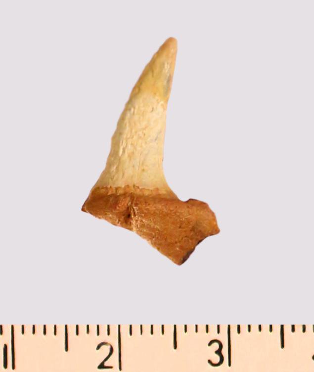 Зуб. Акула. Scapanorhynchus gigas Woodward 1889. Классификация: Хордовые Chordata, Позвоночные Vertebrata, Хрящевые рыбы Chondrichthyes, Пластиножаберные Elasmobranchii