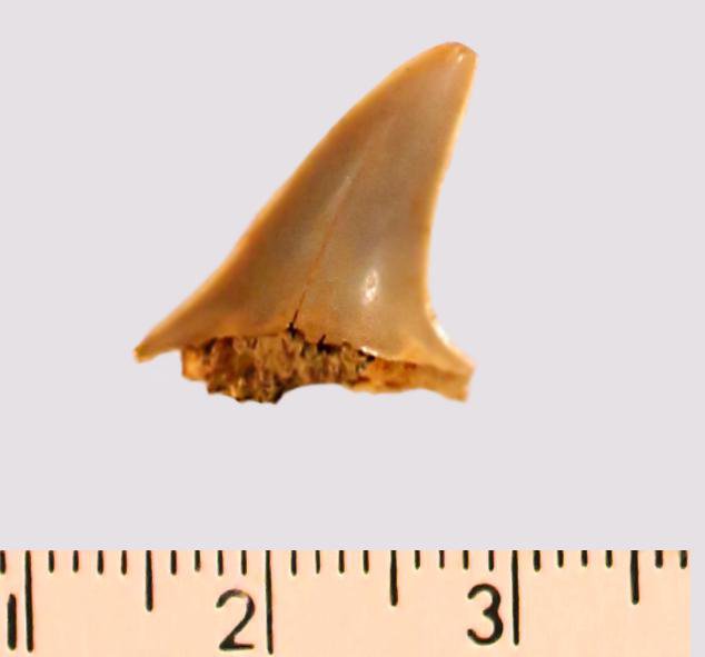 Зуб (фрагмент). Акула. Cretoxyrhina sp. Классификация: Хордовые Chordata, Позвоночные Vertebrata, Хрящевые рыбы Chondrichthyes, Пластиножаберные Elasmobranchii