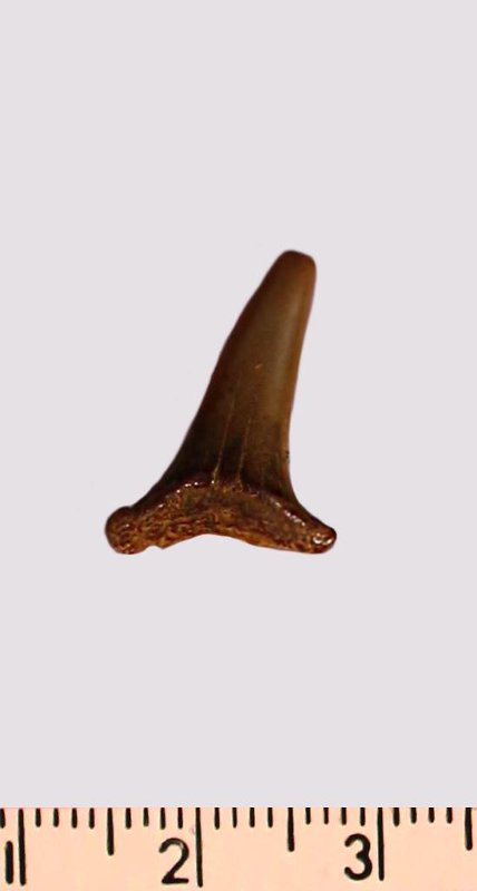 Зуб (фрагмент). Акула. Scapanorhynchus gigas Woodward, 1889. Классификация: Хордовые Chordata, Позвоночные Vertebrata, Хрящевые рыбы Chondrichthyes, Пластиножаберные Elasmobranchii