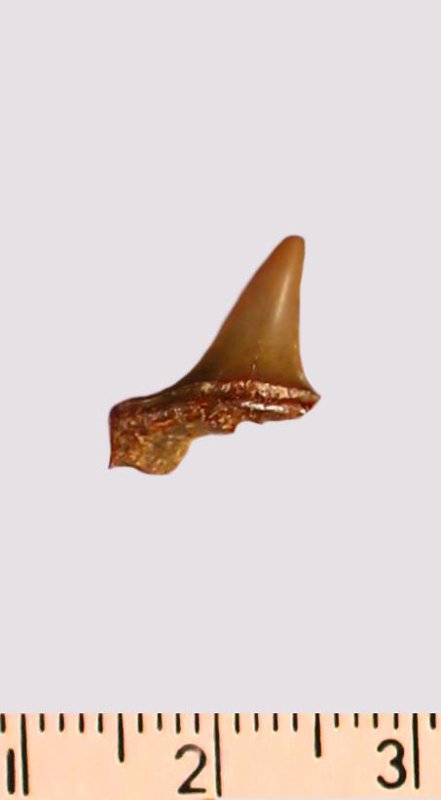 Зуб (фрагмент). Акула. Scapanorhynchus gigas Woodward, 1889. Классификация: Хордовые Chordata, Позвоночные Vertebrata, Хрящевые рыбы Chondrichthyes, Пластиножаберные Elasmobranchii