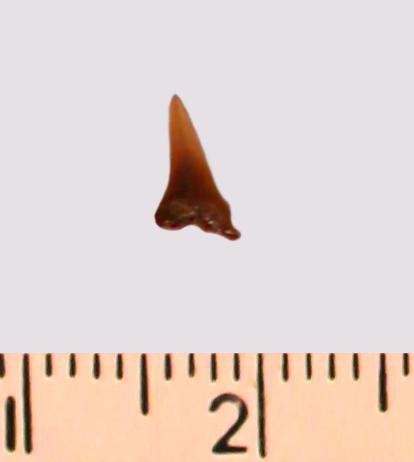 Зуб (фрагмент). Акула. Eostriatolamia subulata (Agassiz, 1843). Классификация: Хордовые Chordata, Позвоночные Vertebrata, Хрящевые рыбы Chondrichthyes, Пластиножаберные Elasmobranchii