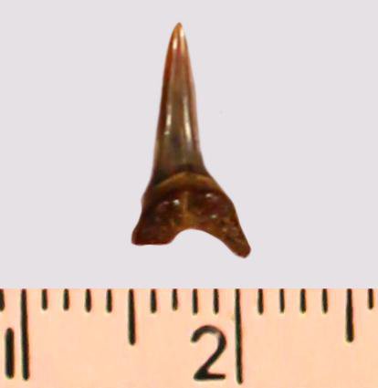 Зуб. Акула. Eostriatolamia subulata (Agassiz, 1843). Классификация: Хордовые Chordata, Позвоночные Vertebrata, Хрящевые рыбы Chondrichthyes, Пластиножаберные Elasmobranchii